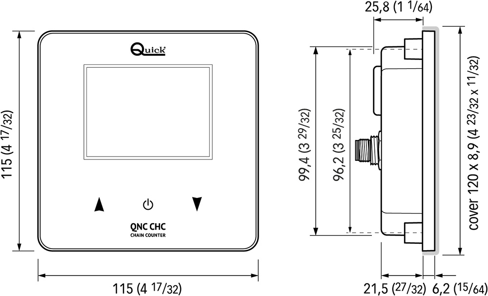 Quick QNC CHC er en komplett løsning med kjettingteller og betjeningspanel i ett. Med den kan du styre ankervinsjen opp og ned, og ha full kontroll på kjettingen. Den store 3,5" skjermen er lettlest selv i sterkt sollys.