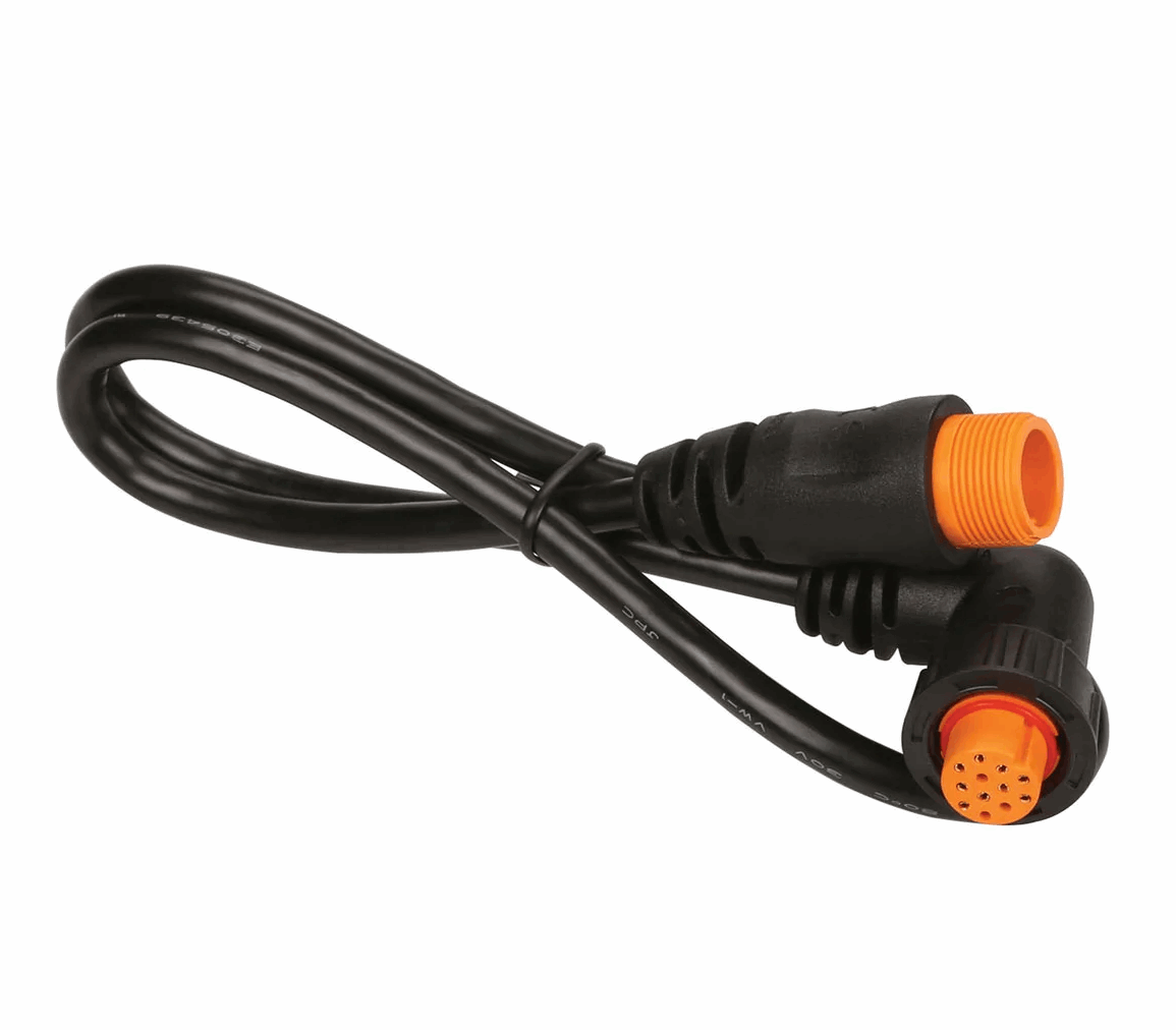 Monter kartplotteren på trange steder eller bytt ut nettverksekkoloddkabelen med denne høyrevinklede svingeradapterkabelen på 0,6 m (23,6 tommer). Støtter alle 12-pinners svingere fra Garmin og Airmar (med XID).