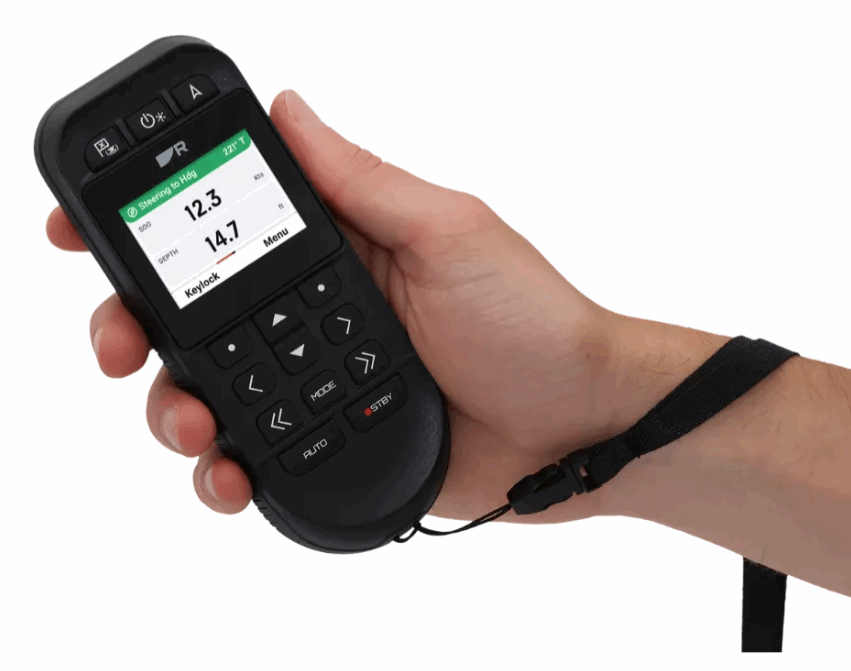 Med en lys fargeskjerm og ergonomisk design for enhåndsbetjening, gir den trådløse marine autopilotfjernkontrollen RCU‑1 deg kraften fra Raymarine Evolution rett i hånden. Enten du trimmer seil, håndterer fiskeutstyr eller bare beveger deg rundt på dekk, kan båtførere holde kontrollen fra praktisk talt hvor som helst om bord.