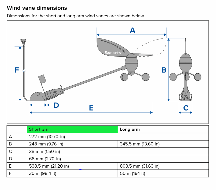 Komplett vindgiver med kort arm (300mm) og 30m kabel/feste