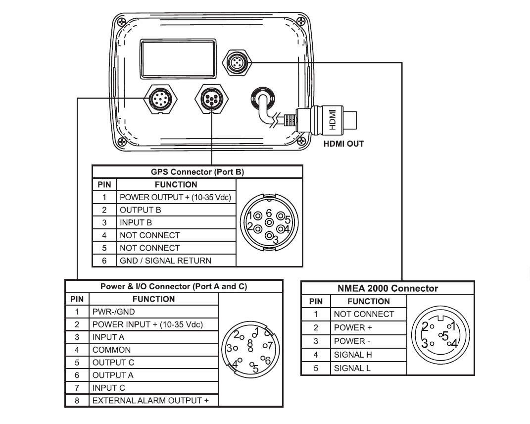 - Tilkobles HDMI widescreen skjerm og GPS antenne