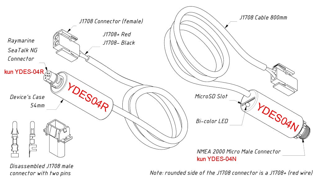 En gateway for motorer med et J1708 serielt grensesnitt til et NMEA 2000 marine digitalt nettverk. Med den kan du se motorturtall, temperatur, arbeidstid, drivstoff flyt og annen informasjon på skjermen til en kartplotter og andre display enheter på et NMEA 2000-nettverk.