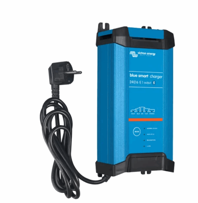 24V, 16A lader, 3 utganger. IP22 er en profesjonell lader m/blåtann til kjente moderne batterityper. Den er beregnet på fast installasjon og har en temperaturstyr vifte for kjøling.